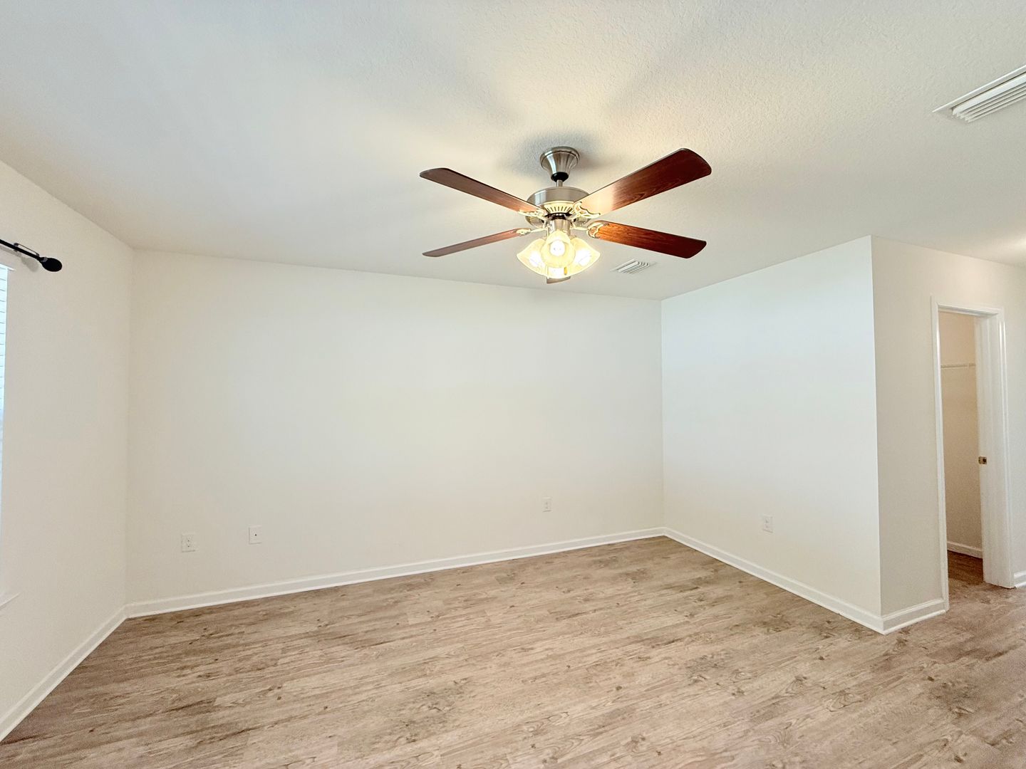 The split floor plan provides privacy while the luxury vinyl plank flooring offers convenience and easy maintenance throughout the home. The open kitchen boasts a beautiful center island with dual-basin sink and granite countertops as well as stainless steel appliances including a side-by-side refrigerator, flat-top range/oven, built-in microwave, and dishwasher.