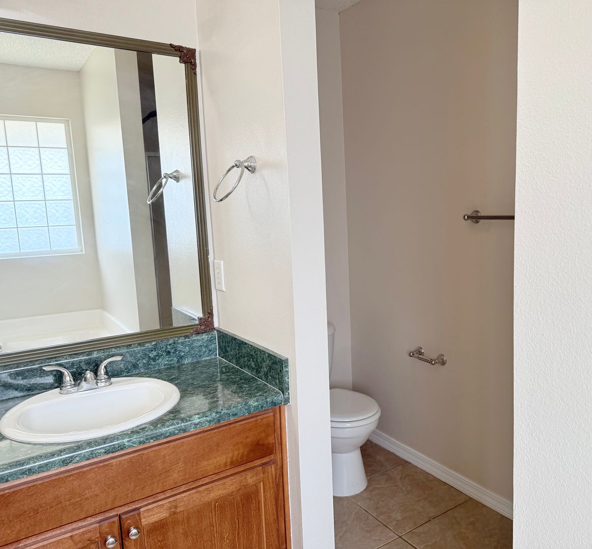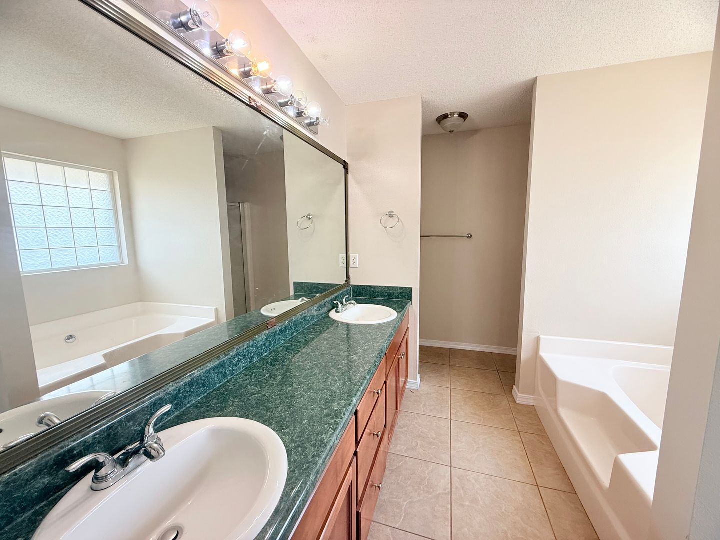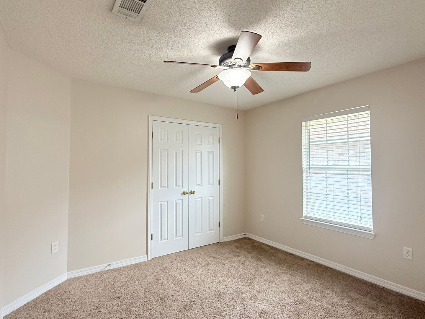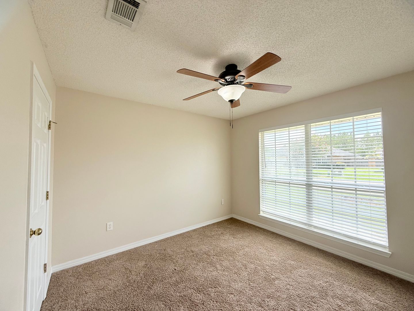This home offers a split floor plan, ensuring privacy for the spacious primary suite. The master bath features his/hers walk-in closets, dual vanities, shower/tub combo, and a private water closet. The two additional bedrooms are located on the opposite side of the home and share a second full bathroom.