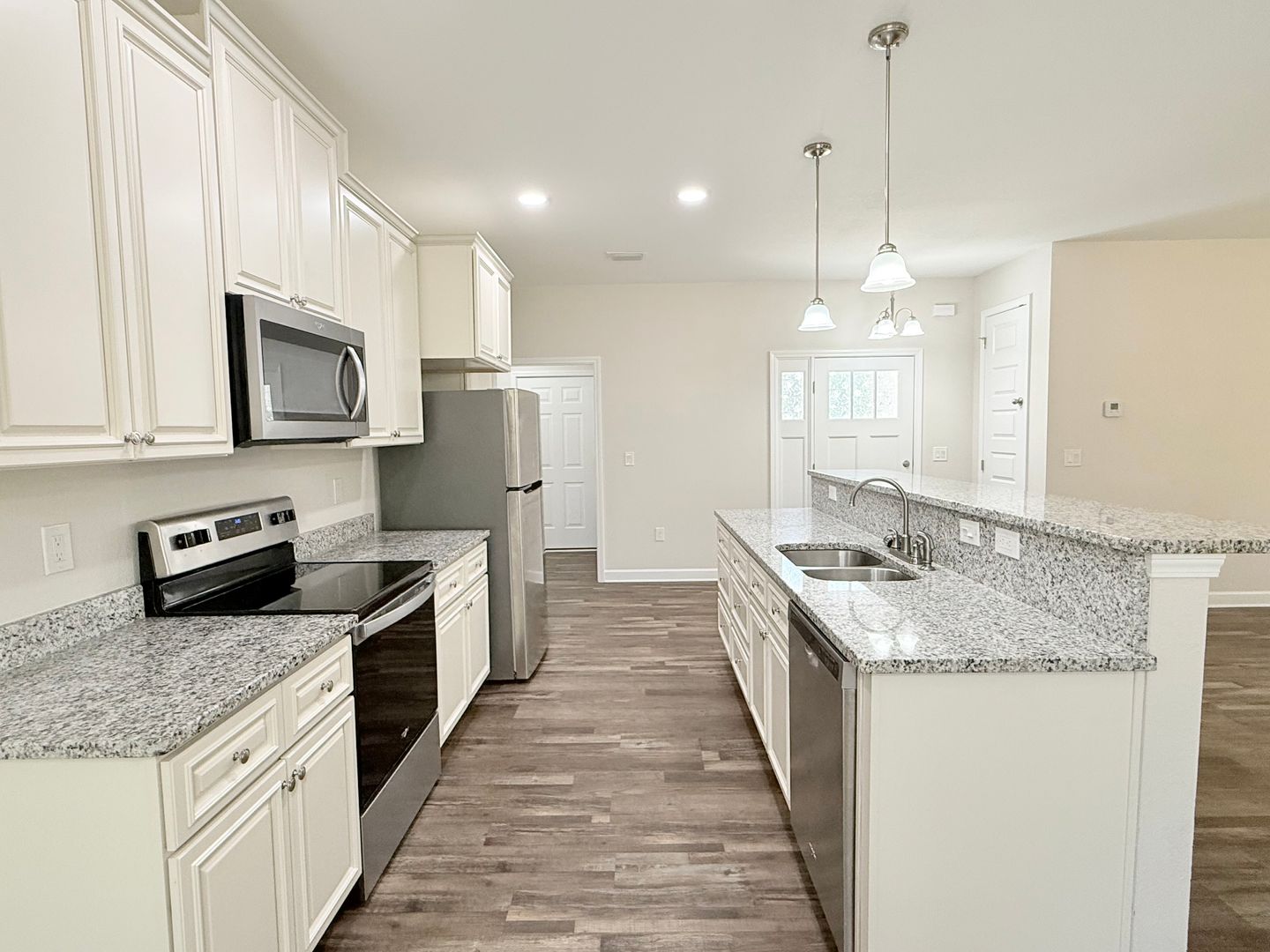 This thoughtfully designed 3-bedroom, 2-bath home offers an open, split-bedroom layout that’s perfect for families or hosting guests. The welcoming foyer leads into the spacious family room, which then flows seamlessly into the kitchen and dining areas.