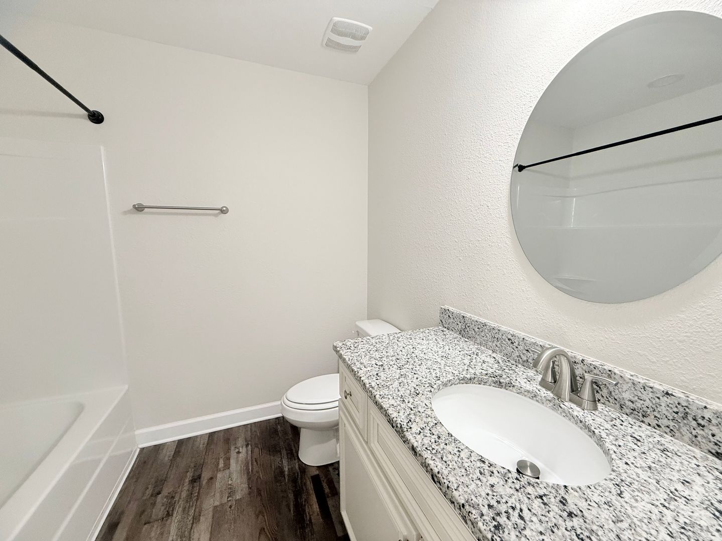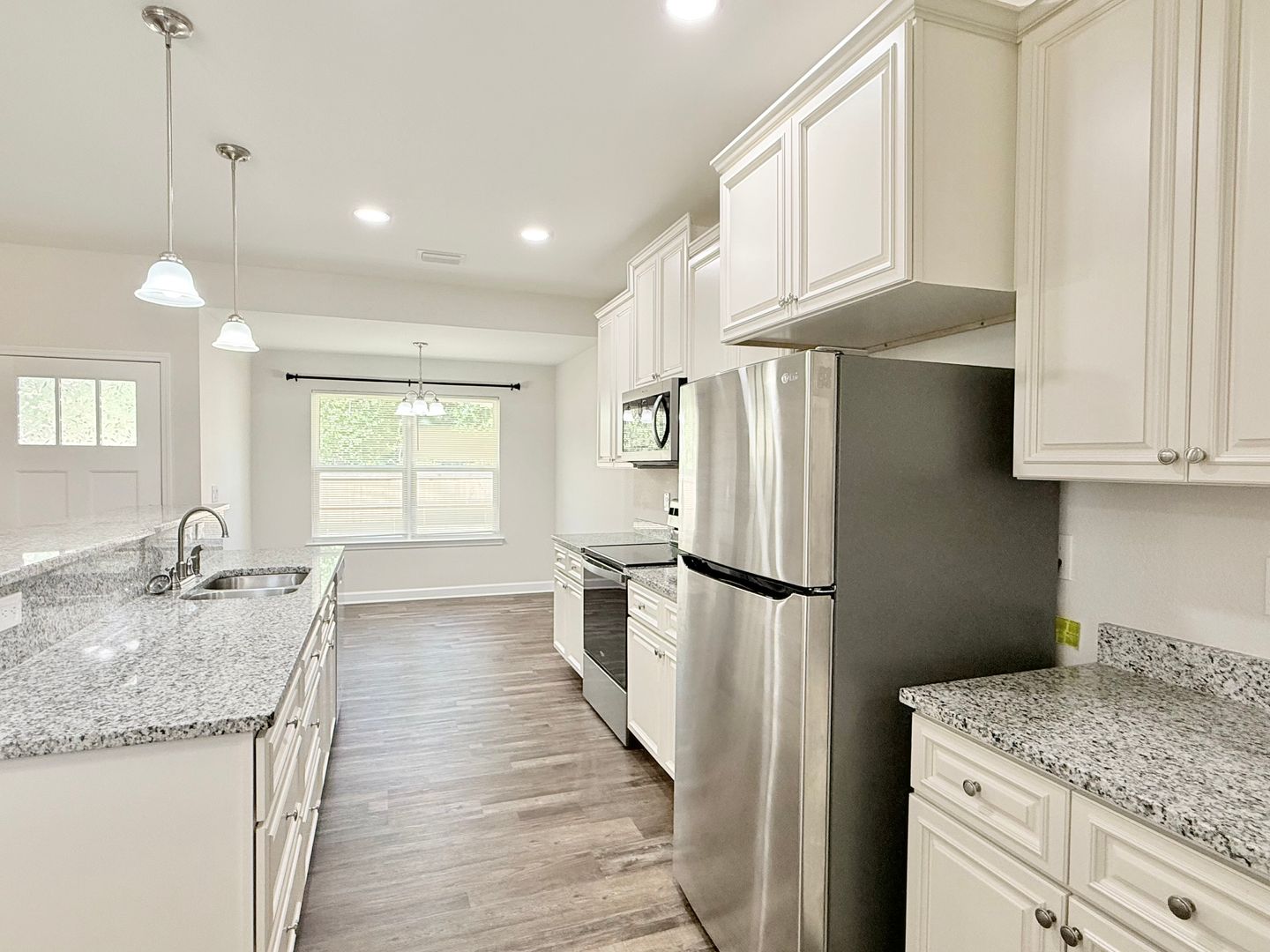 The kitchen is a true highlight, featuring granite countertops, abundant cabinet storage, a double-basin sink, and stainless steel appliances. Additionally, a breakfast bar provides casual seating, while the dining area offers space for both everyday meals and formal gatherings.