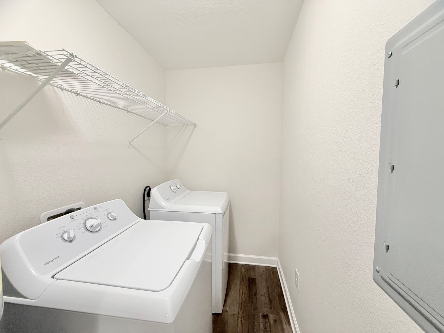 Additional highlights include a mudroom with storage closet connecting the home to the 2-car garage, a spacious laundry/utility room with a full size washer/dryer, a covered back porch, and a fully-fenced backyard.