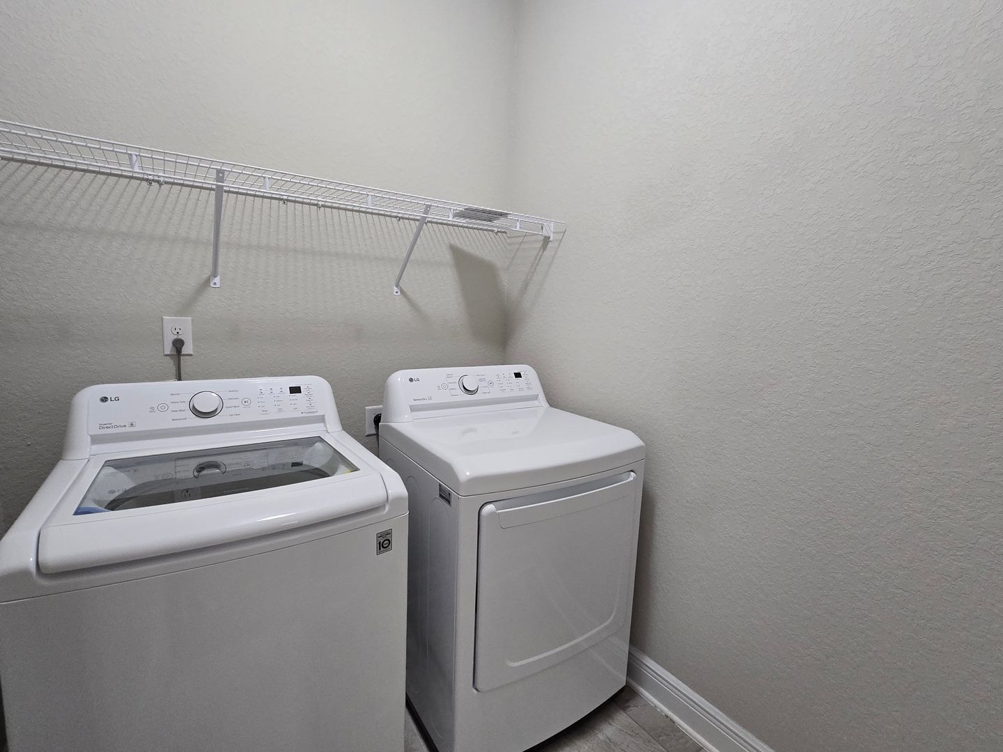 Additional highlights include a laundry room with a full-size washer and dryer provided, a screened-in back porch, and a spacious backyard.