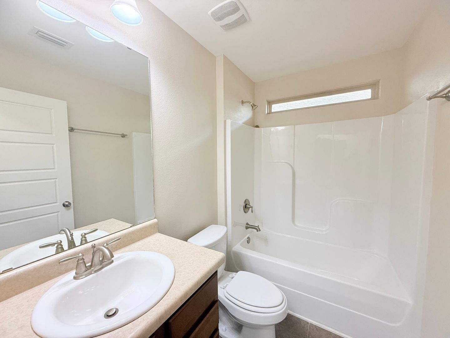 Other features include LVP and tile flooring in all wet areas, a dedicated laundry room with space for a full-size washer/dryer, a concrete back patio, and a fully-fenced backyard.