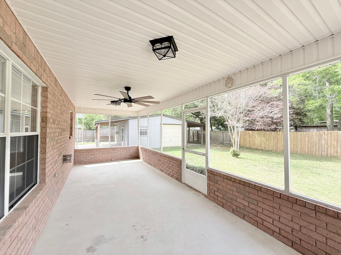 Outside, the spacious screened-in back porch overlooks a large, fully-fenced backyard with an impressive detached setup that includes an 11 x 25 workshop, and a separate 225 sq ft shed.