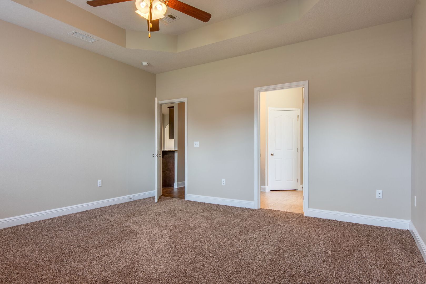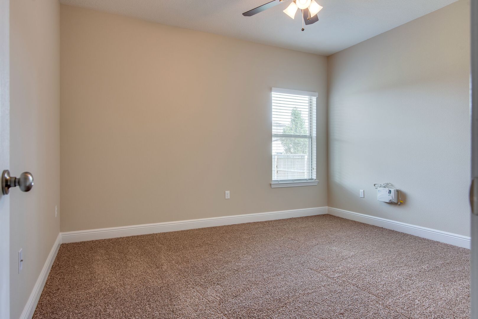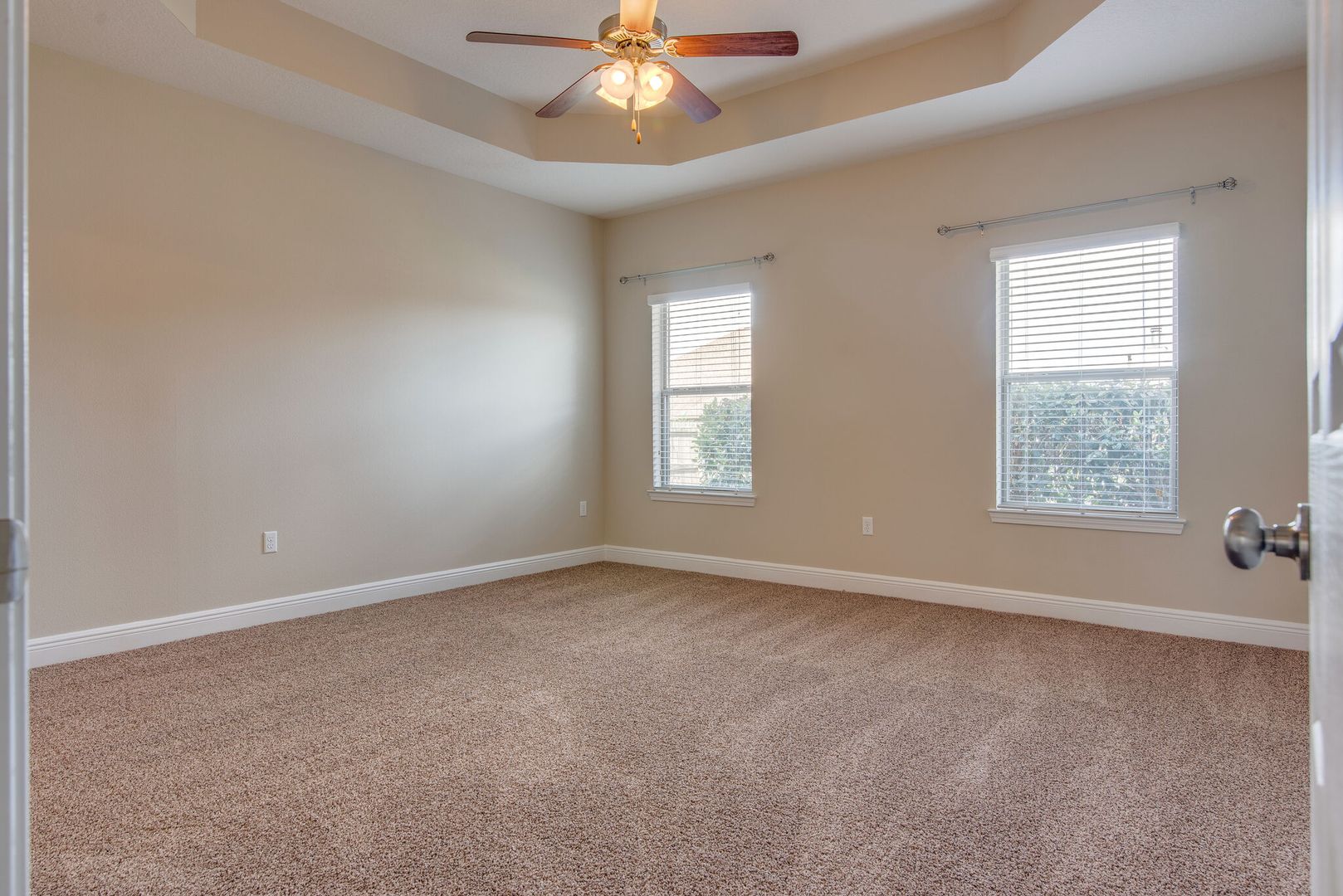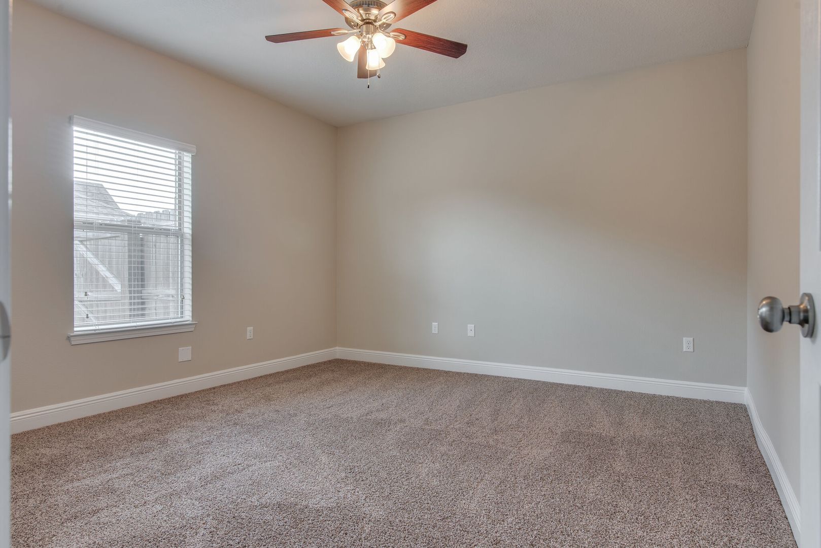 The spacious primary suite includes a beautiful tray ceiling and windows overlooking the backyard. The en-suite bathroom offers a granite dual vanity, garden tub, separate shower and private water closet. Two additional bedrooms are conveniently located near a full bathroom offering a single granite vanity and tub shower combo. The fourth bedroom is privately situated upstairs above the garage and features a ceiling fan and storage closet.