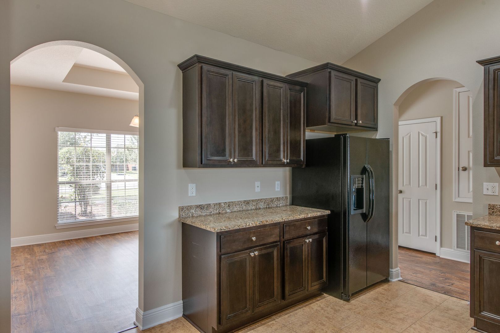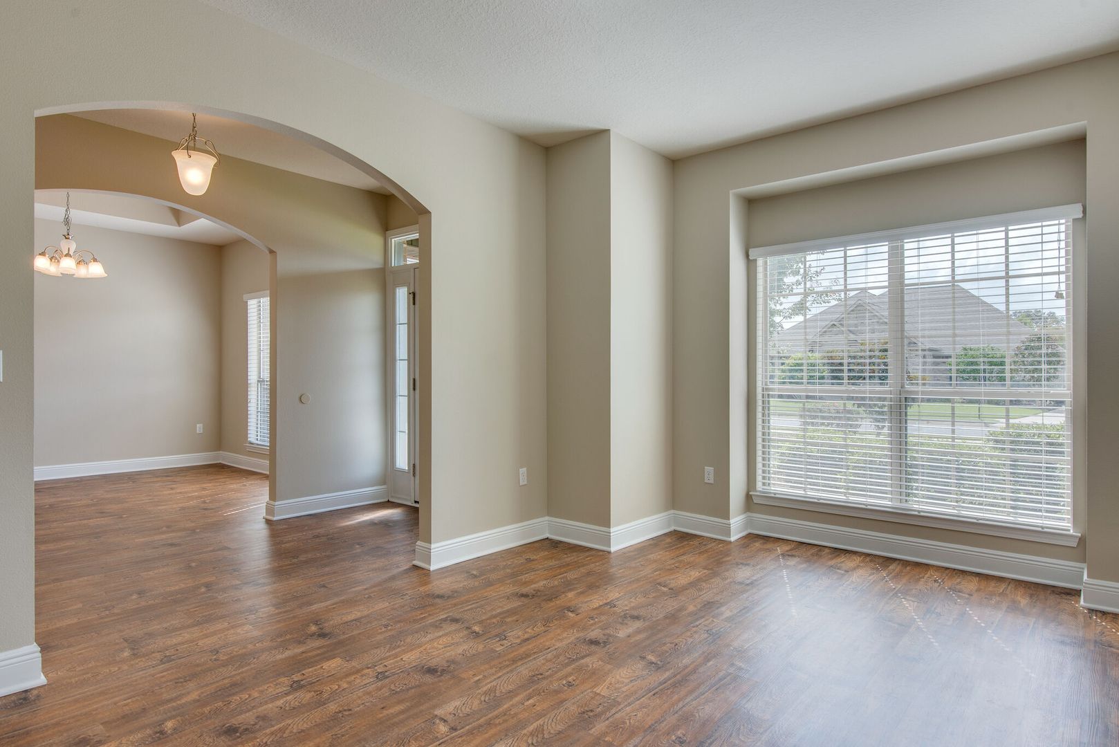 Upon entering, you’ll be welcomed by a wide hallway accented with elegant archways. The formal dining room is located to the right, while a spacious office or flex room sits to the left.