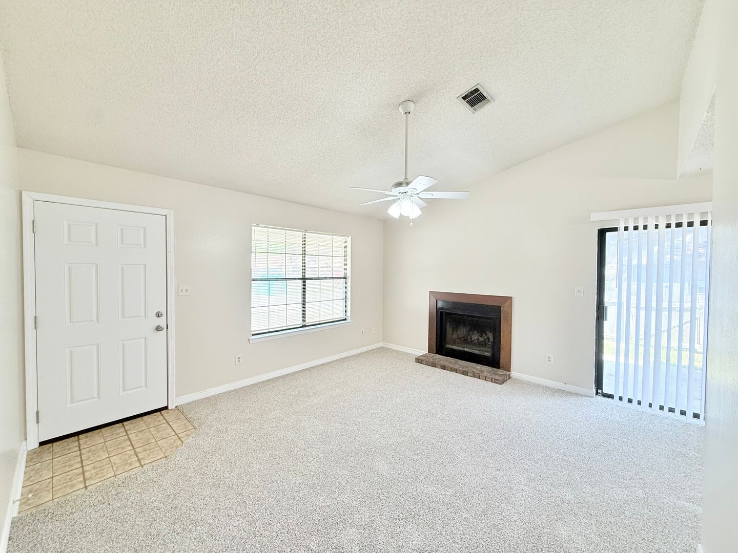 Additionally, the home includes a dedicated indoor laundry area, a cozy fireplace, fully-fenced backyard, and water/sewer services included in the monthly rent.