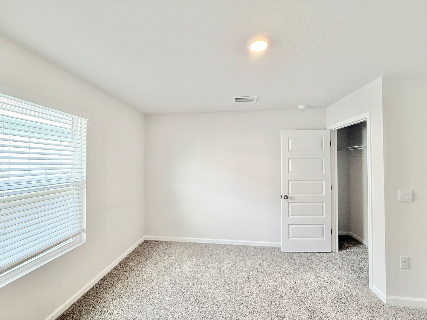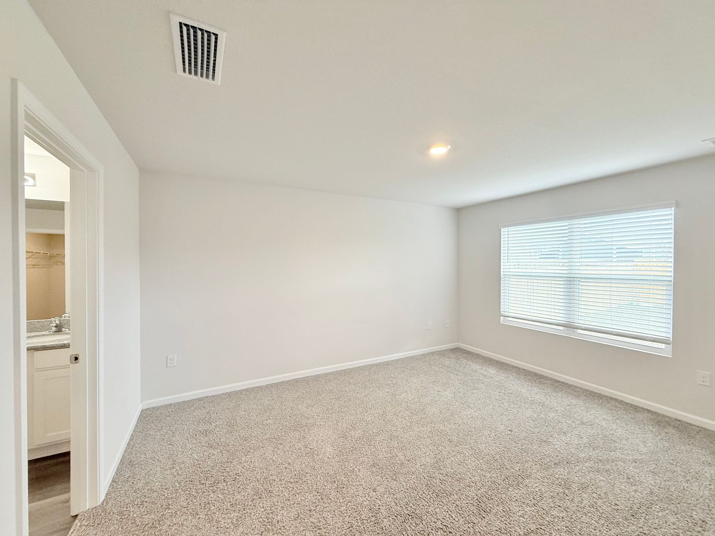 The primary suite, located just off the living area, offers a generous walk-in closet and a luxurious ensuite bath with dual vanities, a large shower, and a private water closet. Three additional bedrooms at the front of the home share a second full bath with a single vanity and tub/shower combo.