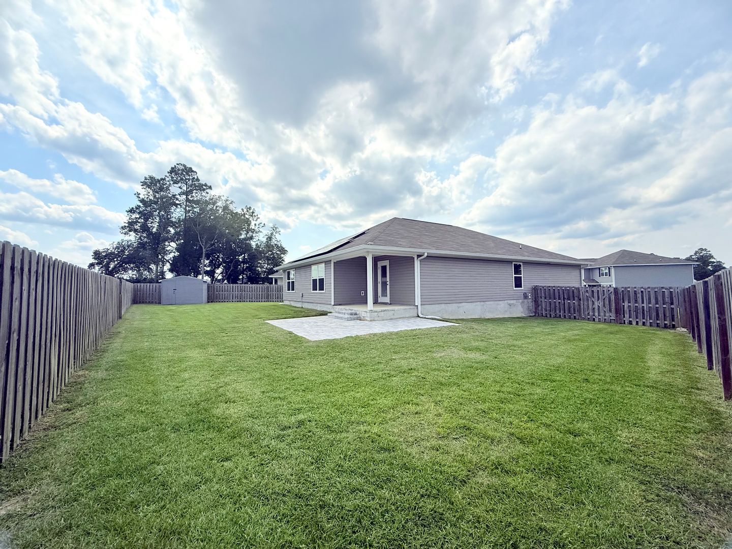 Additional features include an indoor laundry room, a covered backyard patio, a storage shed, and a fully fenced yard—ideal for outdoor enjoyment and privacy.
