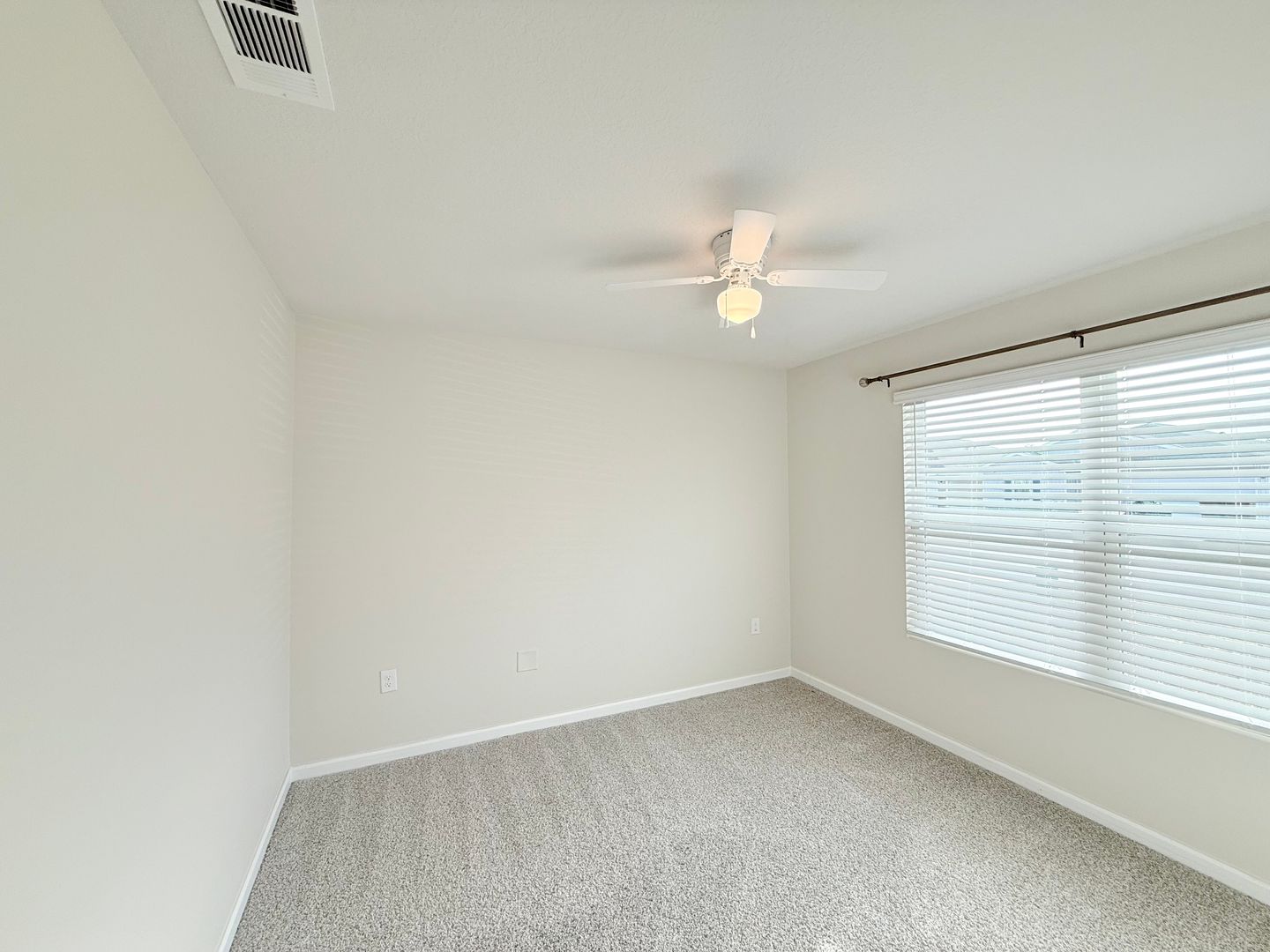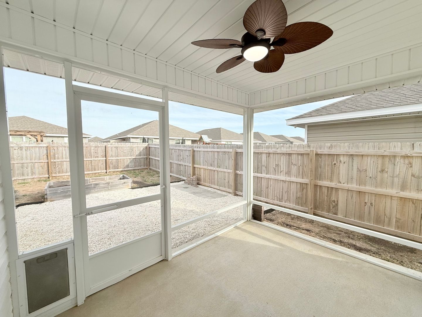 Additional highlights include a dedicated laundry room with space for a full-size washer and dryer, a spacious screened-in back porch with ceiling fan, a fully-fenced backyard, and access to the community park and splash pad.