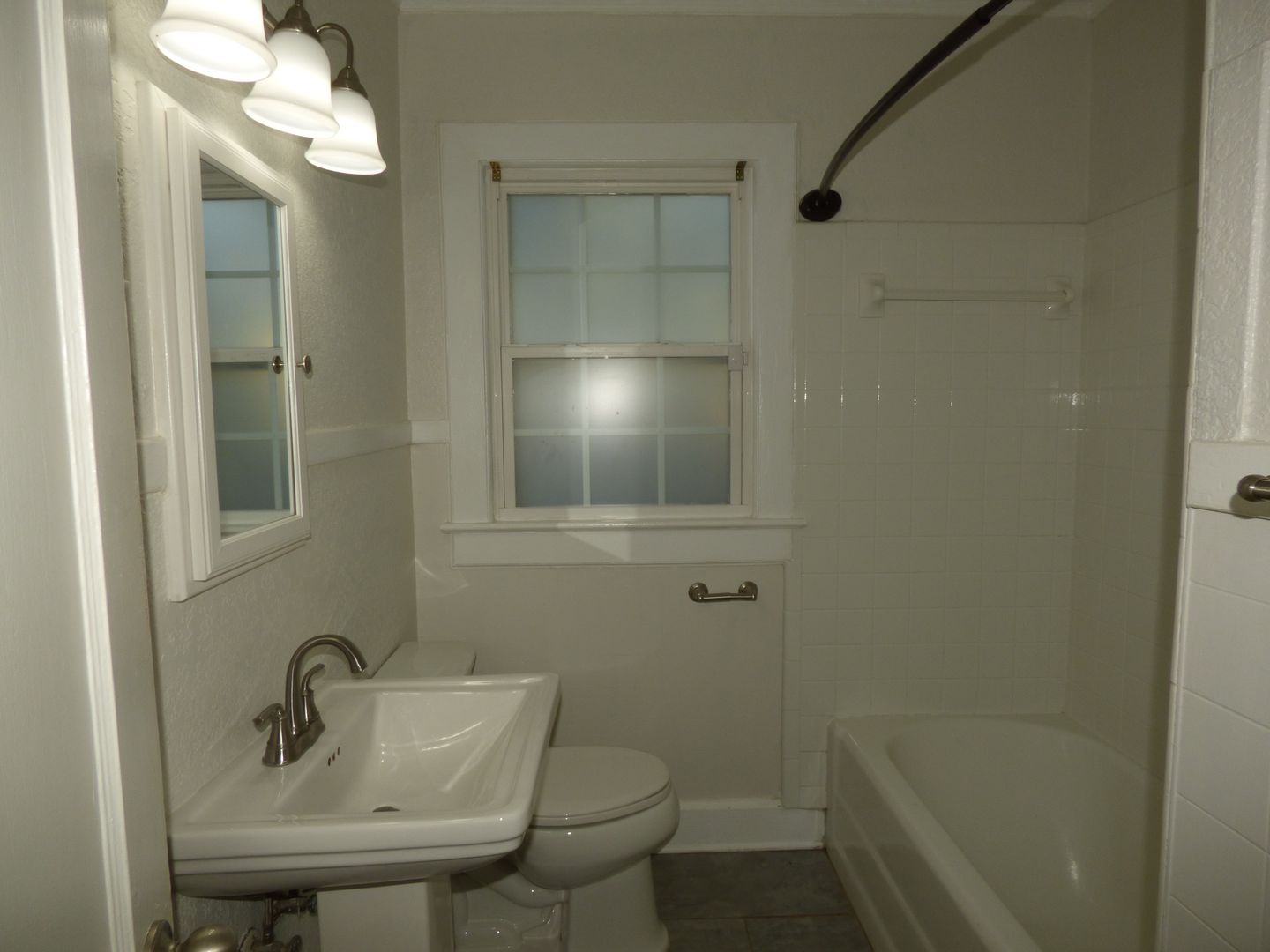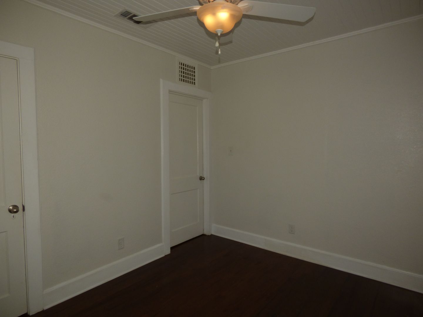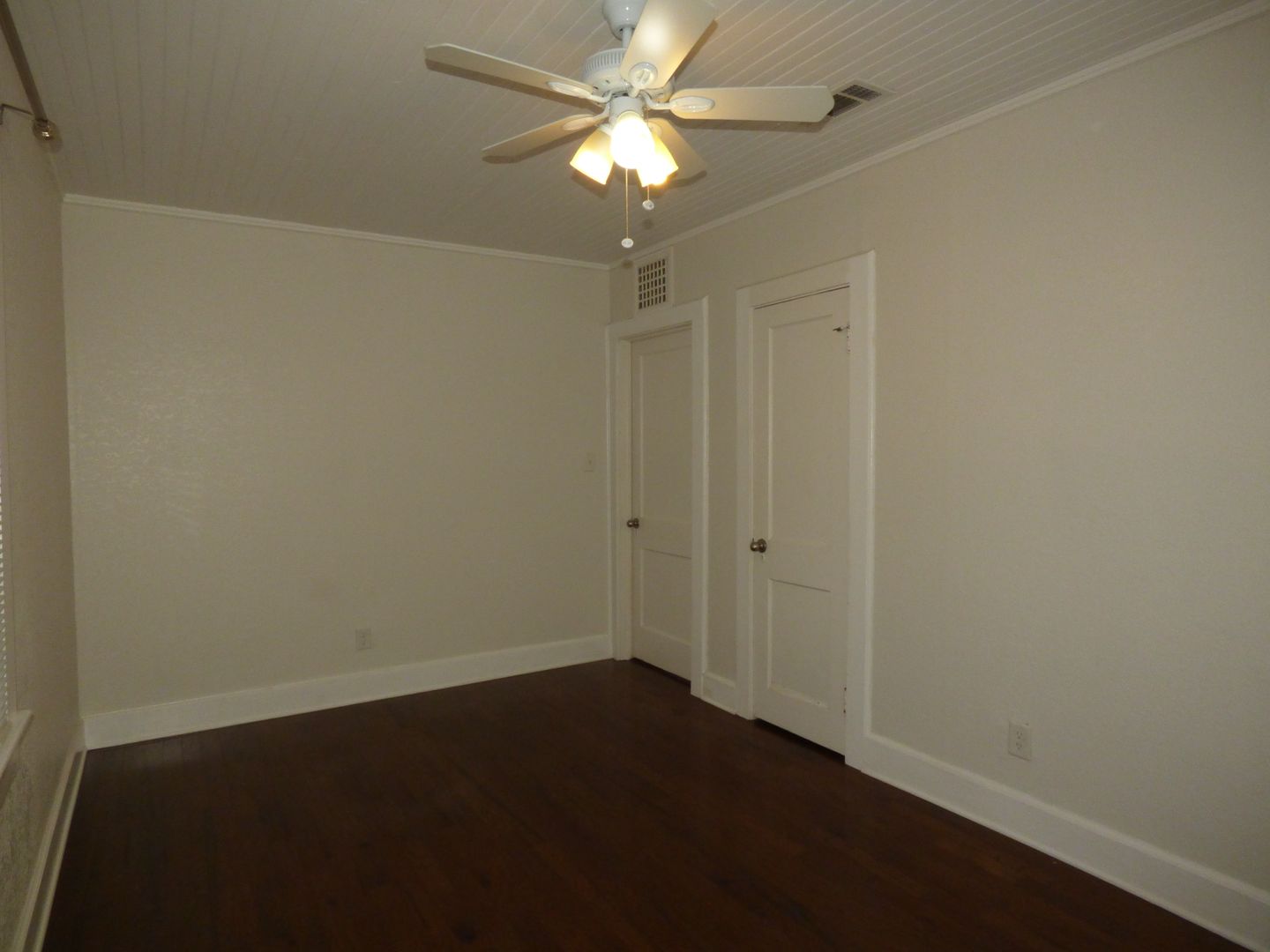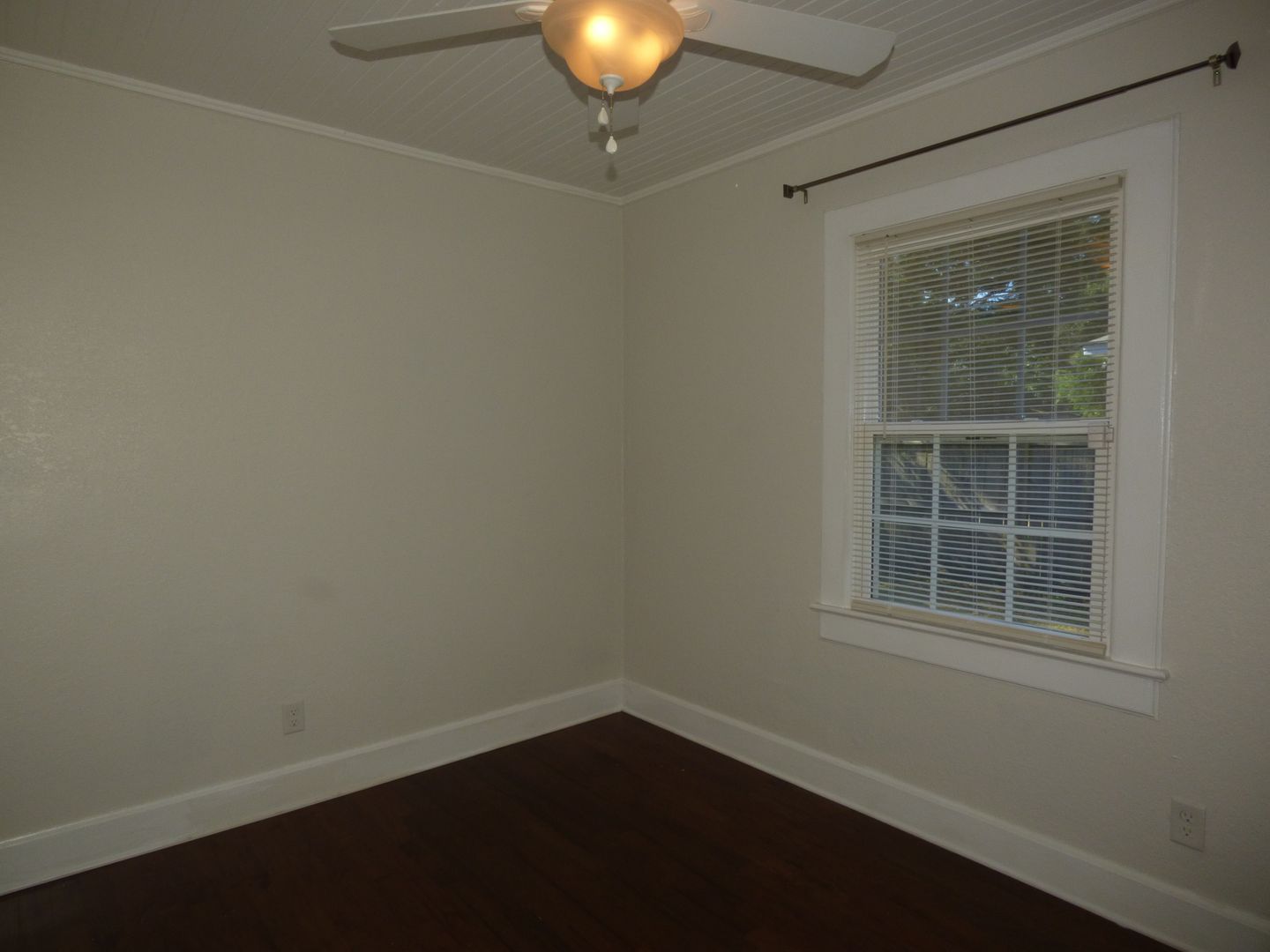Both bedrooms are comfortably sized and continue the home’s charm with hardwood flooring and wood-paneled ceilings. The full bathroom includes a pedestal sink, tile flooring, and a tub/shower combo.