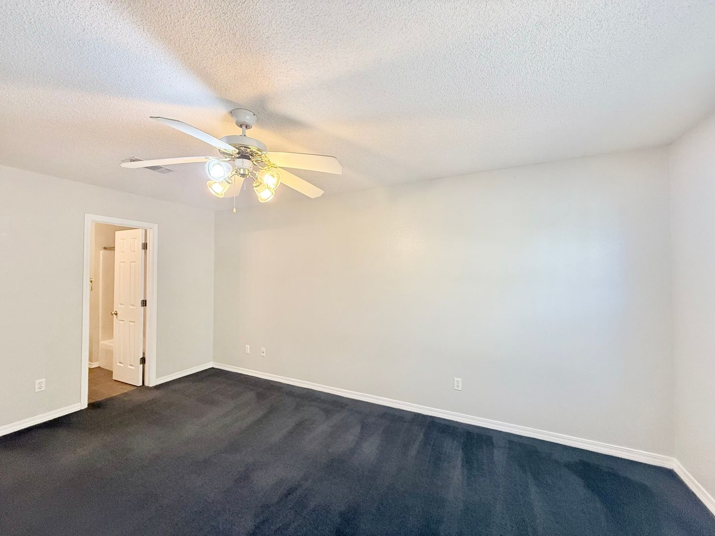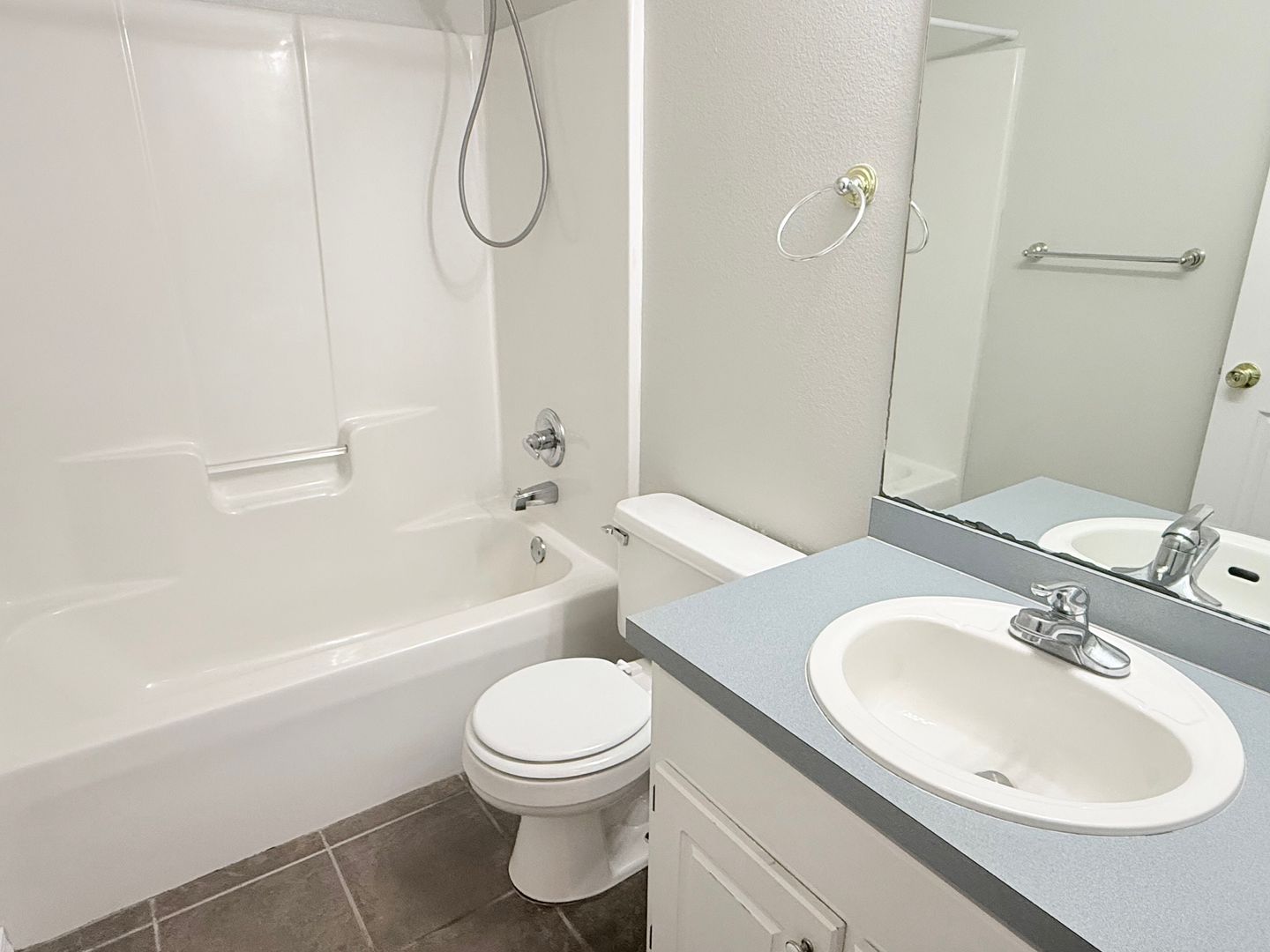 The spacious kitchen offers a dual-basin sink, refrigerator, dishwasher, range/over, and built it microwave. The primary suite includes a large closet and a well-appointed en-suite bathroom with a single vanity, generous counter space, and a tub/shower combo. Two additional bedrooms share a full guest bath.