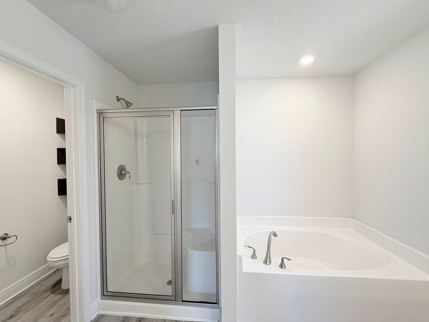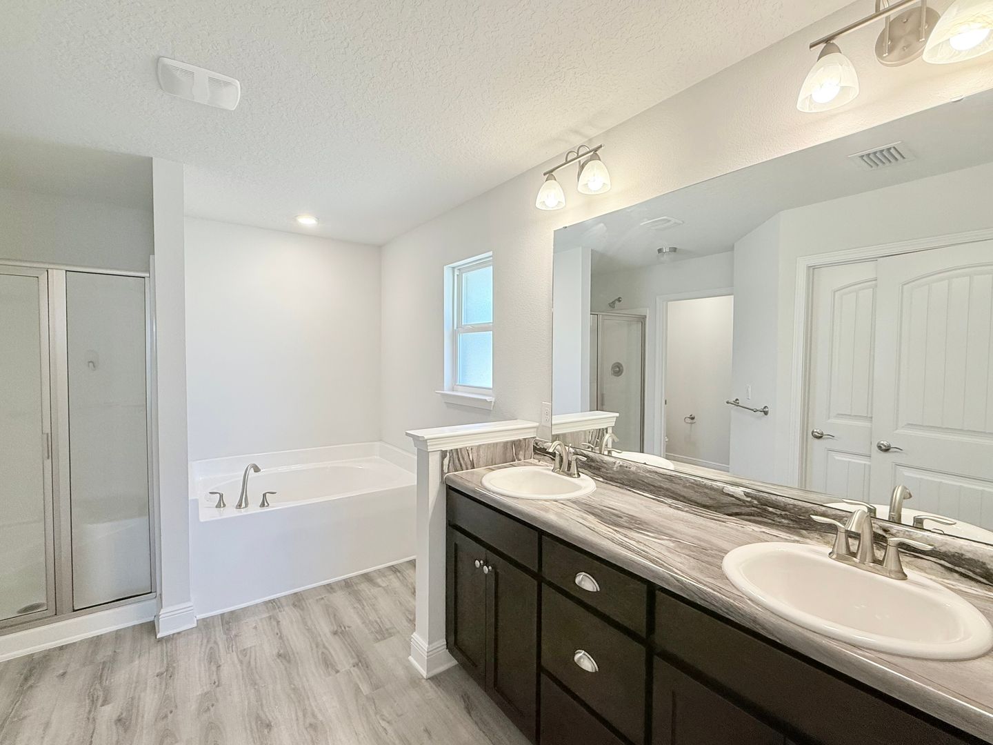 The primary suite boasts boxed ceilings and direct access to the covered back patio. The ensuite bathroom offers a walk-in closet, garden tub, and stand-alone shower. Each additional bedroom includes double-door closets, offering plenty of storage.