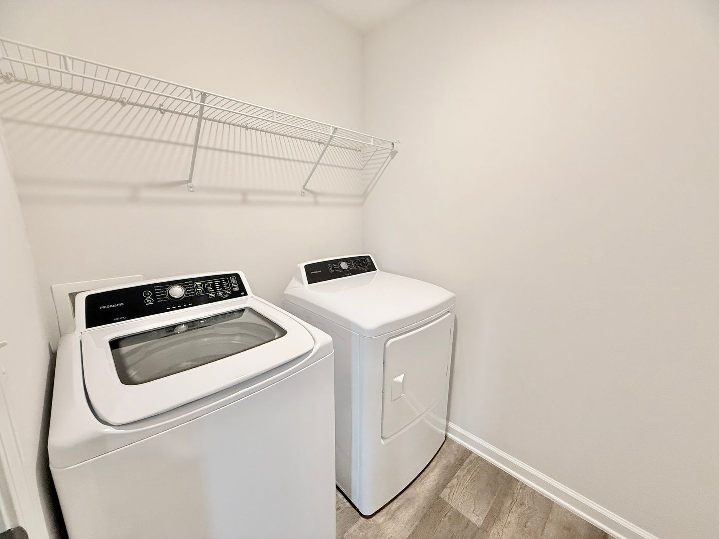 Additional highlights include a laundry room with a full size washer and dryer provided, and a large backyard area.