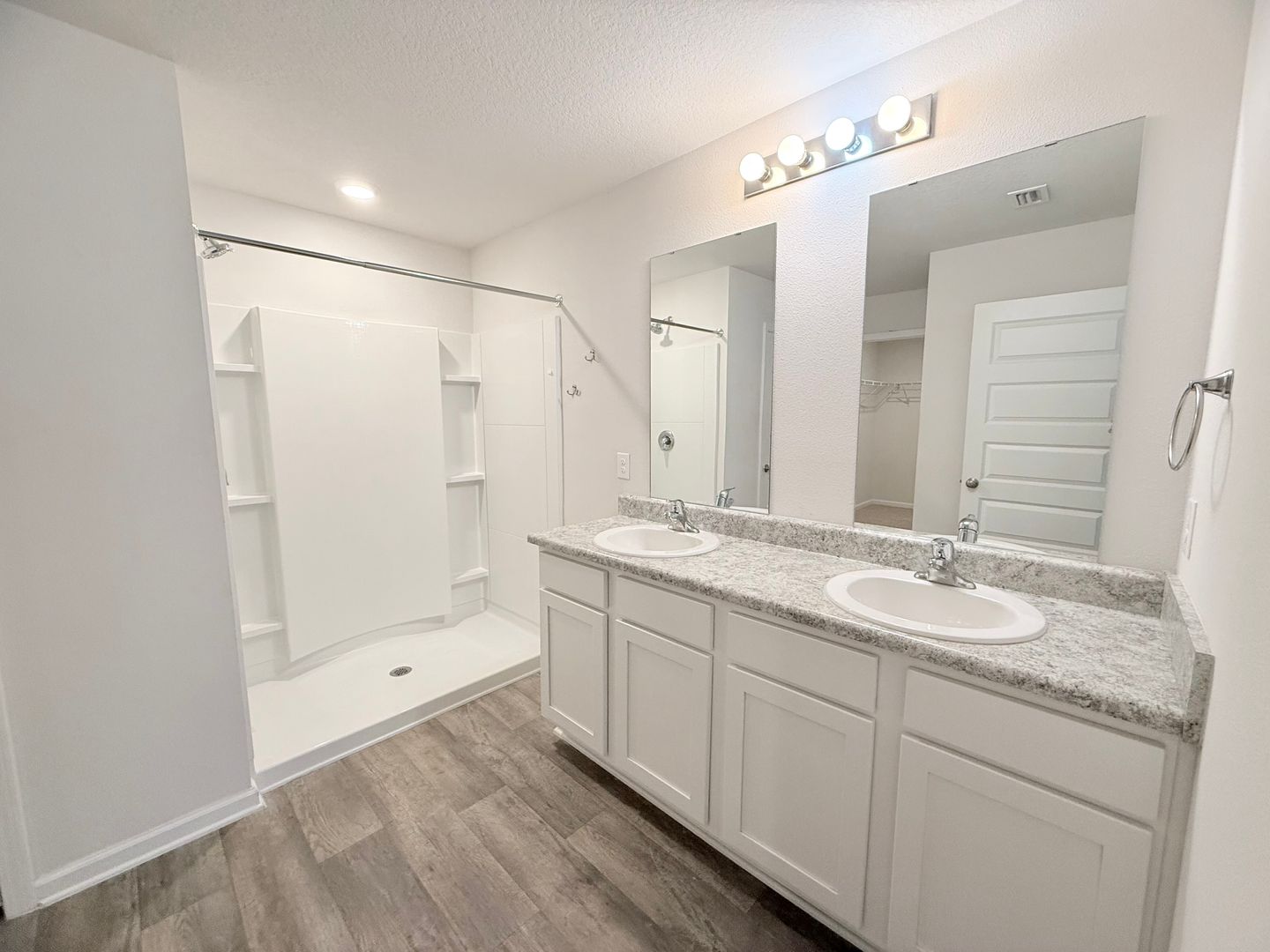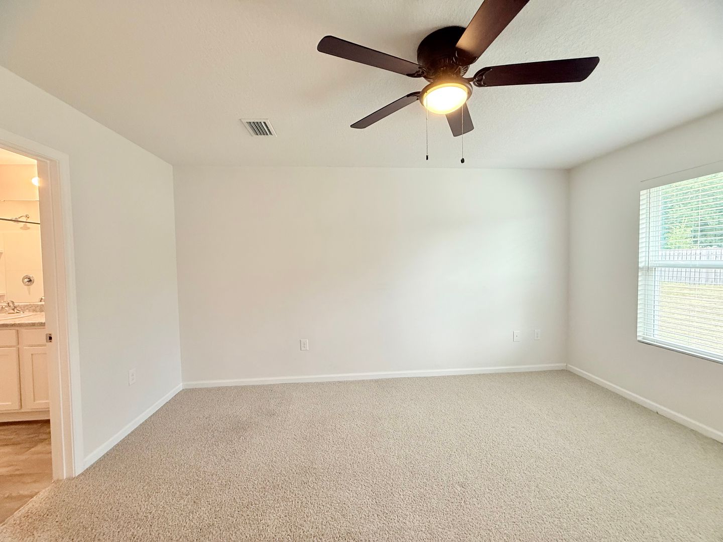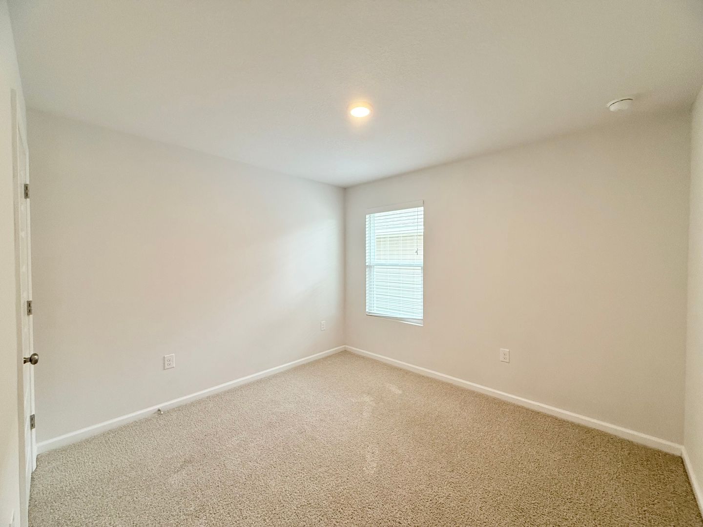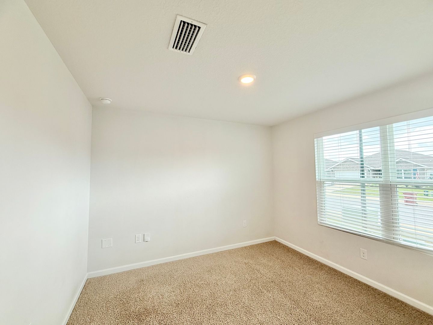 The private primary suite overlooks the backyard and offers a luxurious ensuite bath with a large walk-in closet, dual vanities, and a large walk-in shower. Two additional bedrooms are located at the front of the home near the second full bathroom, while the fourth bedroom is situated on the opposite side—ideal for guests or a home office.